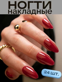 Накладные ногти длинные черные острые с клеем набор миндаль