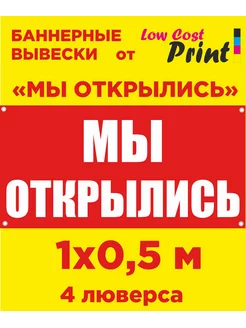 Вывеска "МЫ ОТКРЫЛИСЬ" 3х1 м 8 люверсов