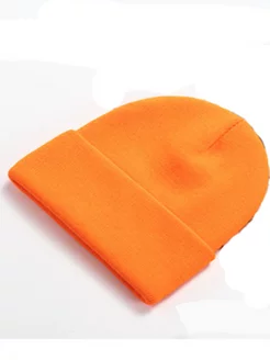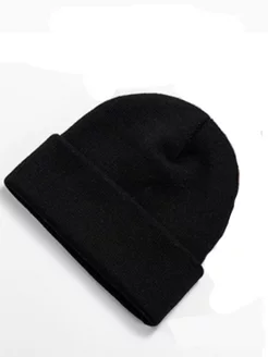 Шапка бини трикотажная с отворотом унисекс осень зима