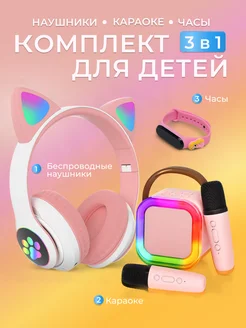 Детский набор наушники беспроводные, караоке и часы