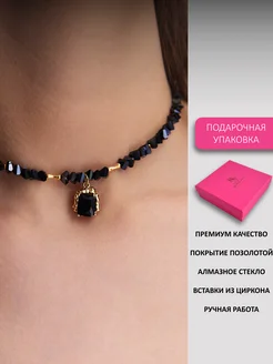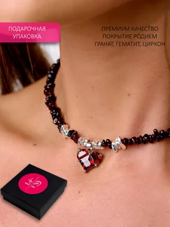 Чокер на шею черный из граната с кулоном сердца Бижутерия