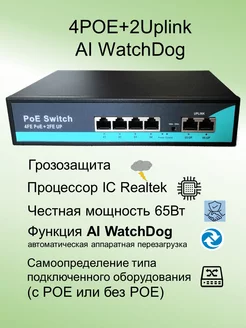 PoE коммутатор свич 4POE+2Uplink 100 Мбит с,watchdog