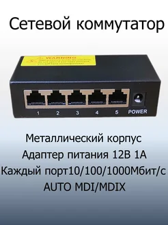 Коммутатор свич сетевой 5 портов 1000Мбит с, 12Вольт