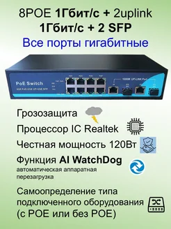 Коммутатор свич 8POE 1000Мбит c+2Uplink1000 Мбит с+2SFP