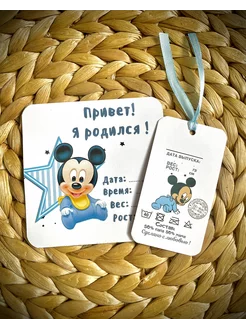 Карточки для фотосессии новорожденных мальчик Микки Маус