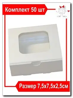 Коробка подарочная белая с окном 7,5х7,5х2,5 см