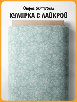 50х175см Кулирка с лайкрой - снежинки на голубом