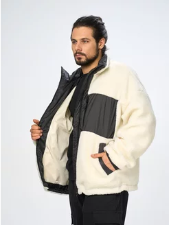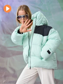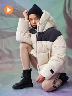 Куртка зимняя оверсайз на биопухе с капюшоном