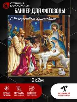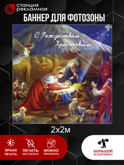 Баннер для фотозоны "С Рождеством Христовым!" 2х2м