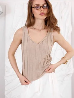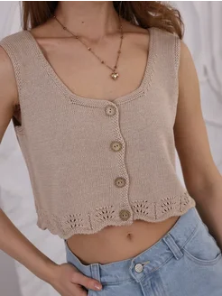 Топ летний вязаный оверсайз на пуговицах