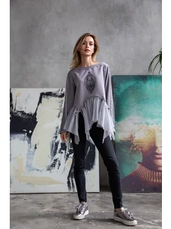 Лонгслив с баской "Матрешка" серый