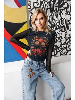 Свитшот "Цветы" черный