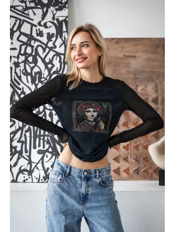 Лонгслив из сетки "Русская тоска" черный