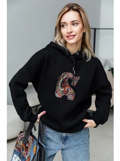 Худи "Конек" в русском стиле черный