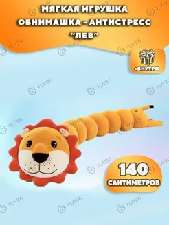 Мягкая игрушка подушка длинная плюшевая Гусеница Лев 140 см
