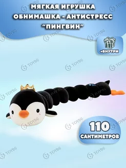 Мягкая игрушка подушка длинная плюшевая Гусеница Пингвин 110