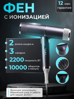 Фен щетка для волос крутящаяся мощная стайлер с насадками