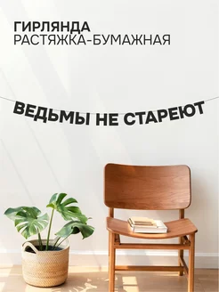 Гирлянда бумажная чёрная из букв - Ведьмы не стареют