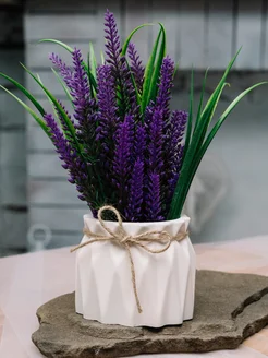 Искусственные цветы для декора Лаванда и Осока в кашпо