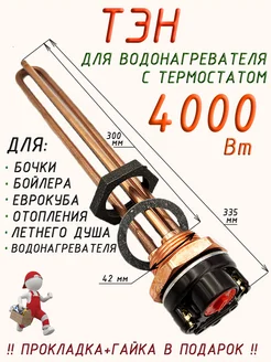 Тэн с термостатом для водонагревателя 4000 Вт универсальный