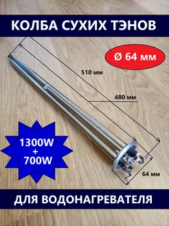Колба сухих ТЭНов в сборе 1300W+700W, нержавейка