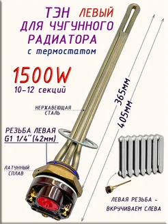 ТЭН для чугун. радиатора 1500Вт термостатом левая1,25"(42мм)