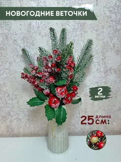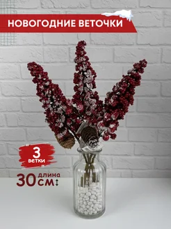 новогодняя ветка с ягодками для декора