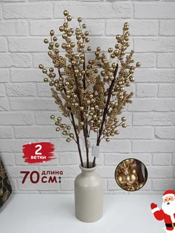 Ветки новогодние декоративные золотистые с ягодами