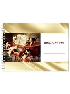 Тетрадь для нот А5, 24 стр, пружина. Котята и рояль