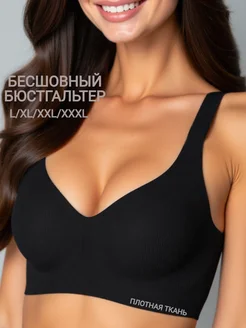 Бюстгальтер бесшовный в рубчик черный большие размеры