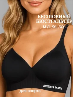 Бюстгальтер бесшовный без косточек черный для спорта