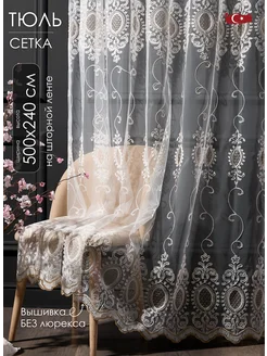 Тюль 500х240 см готовый с вышивкой на шторной ленте