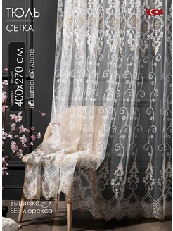 Тюль 400х270 см готовый с вышивкой на шторной ленте