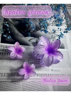 Крабик цветок для волос 2 шт желтый и фиолетовый