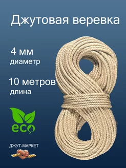 Джутовая веревка 4 мм 50 метров шнур жгут