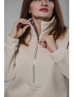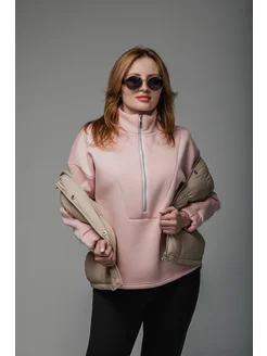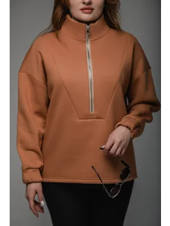 Свитшот оверсайз с начесом и молнией утепленный