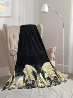 Плед из велсофта 200х180 см Мопсы Лежачие