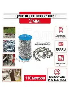 Цепь короткозвенная сварная оцинкованная 2 мм, 110 метров