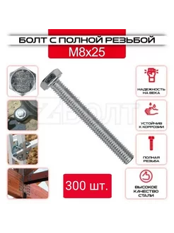 Болт с шестигранной головкой, DIN933, М8х25, 300 шт