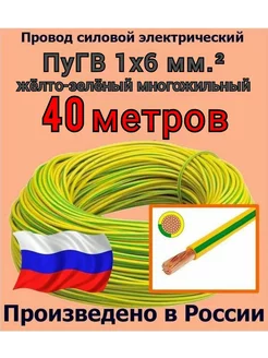 Провод ПУГВнг-LS 1х6 мм, желто-зелёный, 40 м, ГОСТ