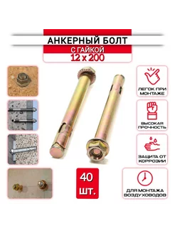 Анкерный болт с гайкой 12х200 мм - 40 шт