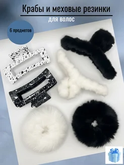 Крабики и меховые резинки черно-белые