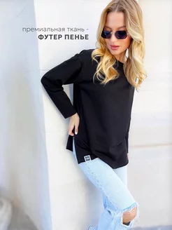 Лонгслив осенний оверсайз с разрезами по бокам удлиненный