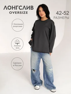 Лонгслив оверсайз базовый удлиненный с разрезами по бокам