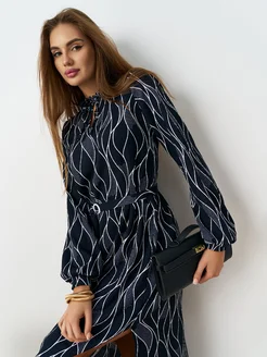Блузка офисная с длинным рукавом больших размеров с вырезом