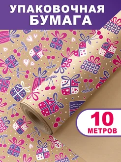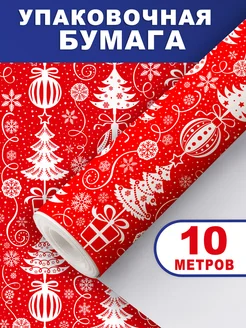 Упаковочная бумага для подарков в рулоне 10м новогодняя