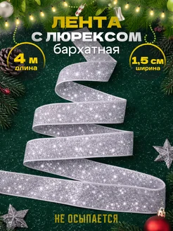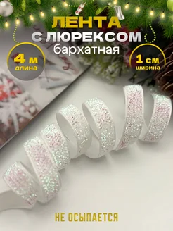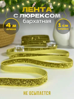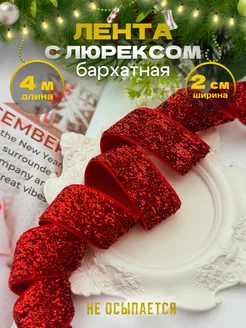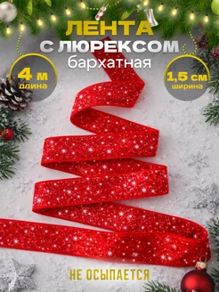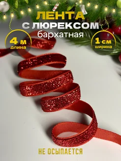Лента бархатная с люрексом тесьма новогодняя блестящая 4 м