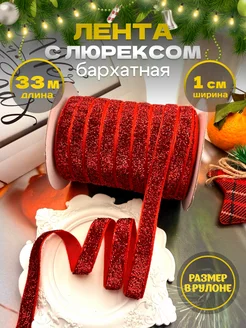 Лента бархатная с люрексом тесьма новогодняя блестящая 33 м