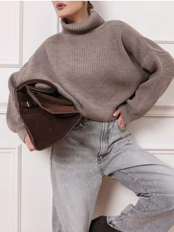 Свитер вязаный оверсайз удлиненный однотонный джемпер