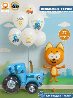 Шары воздушные набор для фотозоны синий трактор и котэ